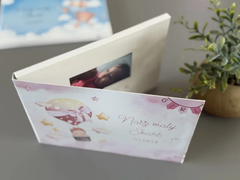 Dlatego stworzyliśmy prosty i innowacyjny sposób na oglądanie, dzielenie się i prezentowanie swoich filmów i zdjęć – video album. Wystarczy otworzyć okładkę, a film ożyje, przywołując wszystkie najlepsze obrazy, dźwięki i emocje, które tylko wideo potrafi oddać. Z tego powodu video album to idealny prezent na roczek lub prezent na chrzest.