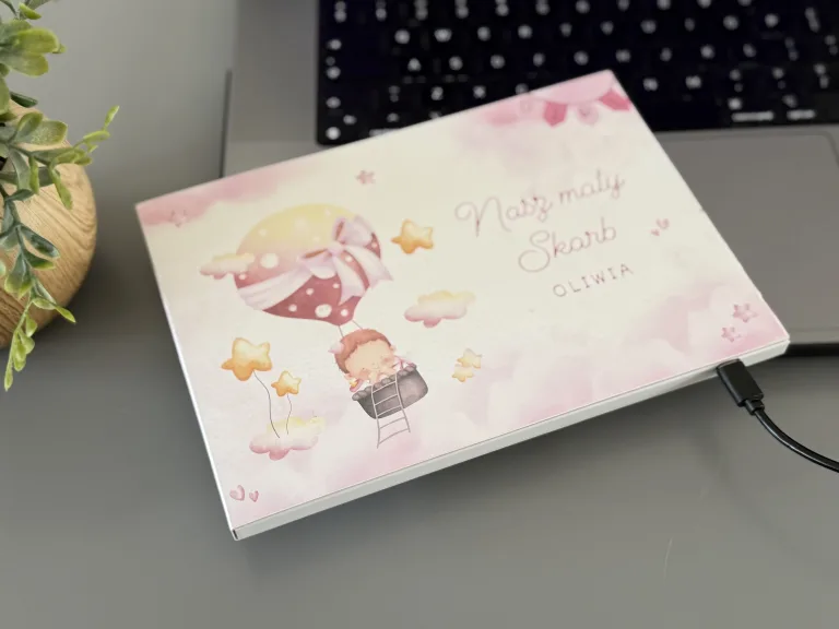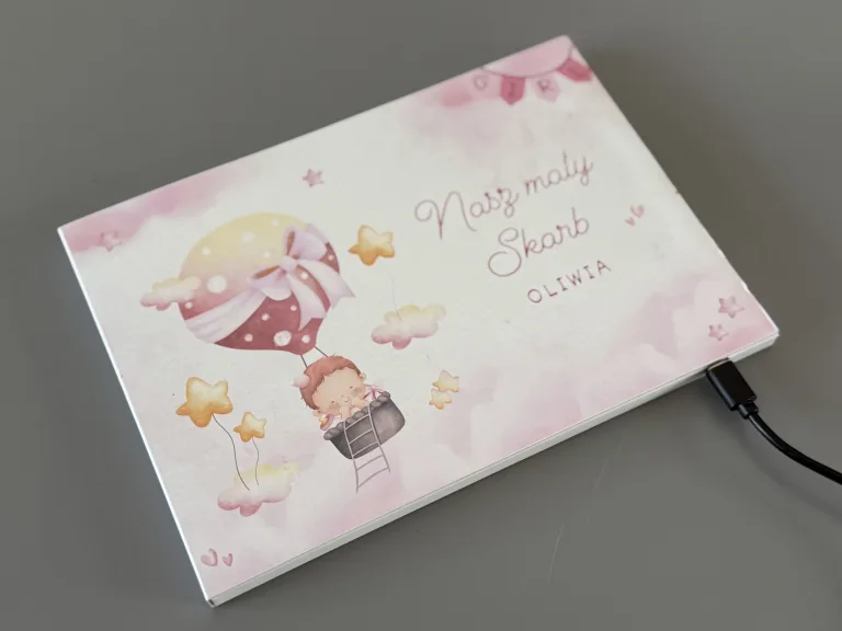 Wystarczy otworzyć album, a zapisane wspomnienia automatycznie ożyją, zamieniając go w magiczną kronikę pierwszych dni życia dziecka. Dodawanie nowych materiałów jest bajecznie proste – wystarczy podłączyć album do komputera i wgrać pliki tak łatwo, jak na pendrive’a.