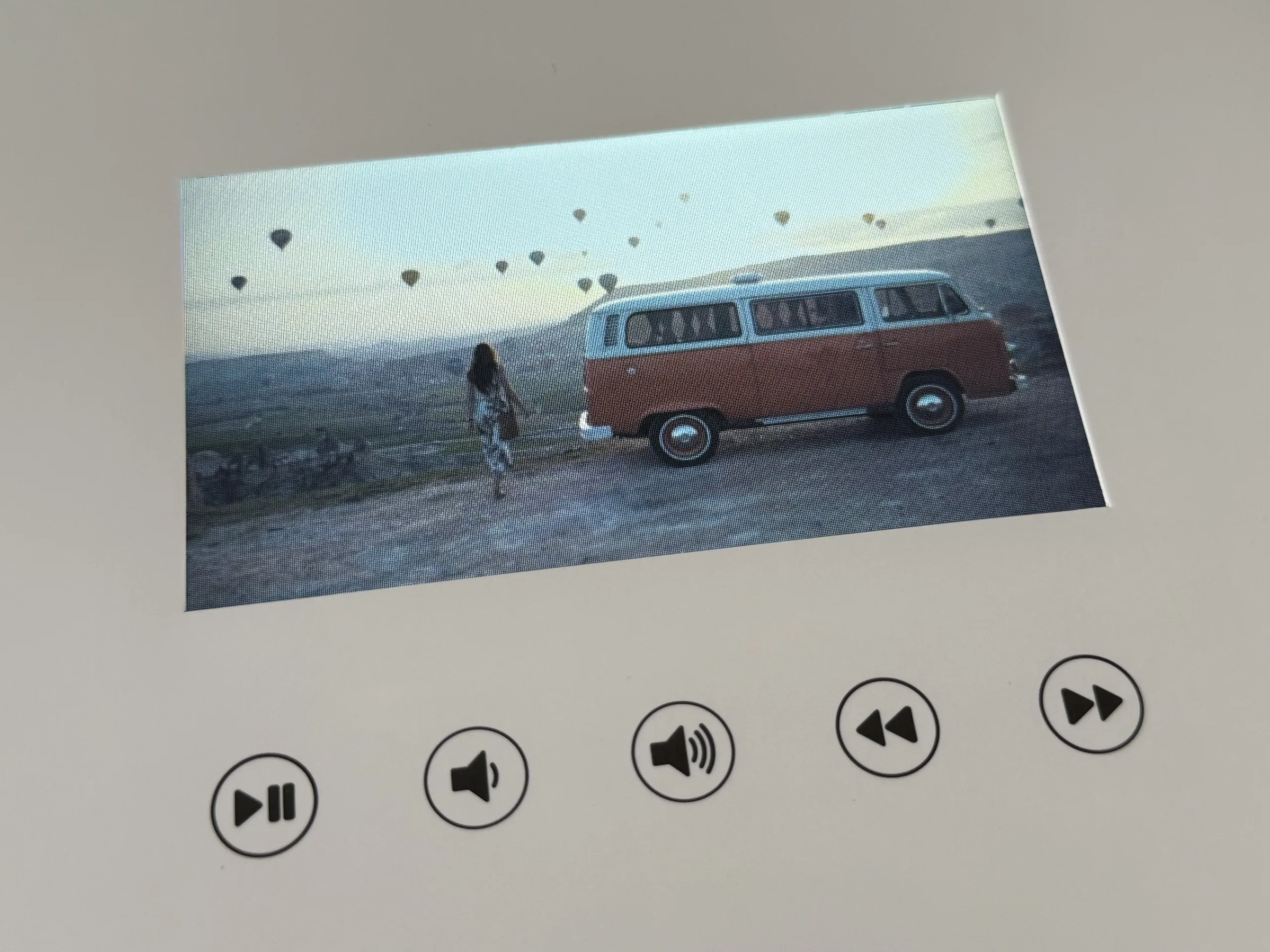 Wystarczy otworzyć okładkę, a wcześniej wgrane filmy i zdjęcia automatycznie się uruchomią, zaskakując obdarowanego prawdziwym show! Dodawanie materiałów jest dziecinnie proste – podłączasz album do komputera i wrzucasz pliki tak łatwo, jak na pendrive’a.